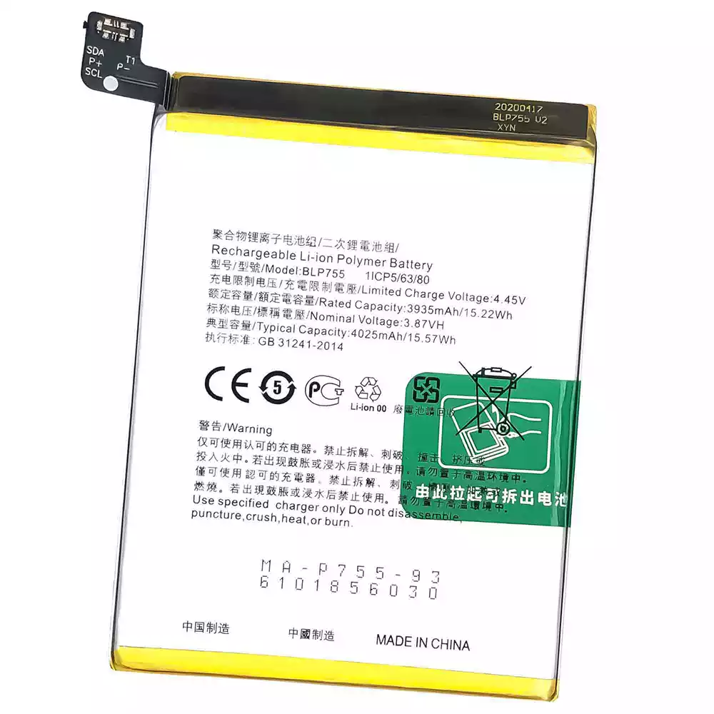 Akku BLP755 alkalmas OPPO Reno3 4G 2020 / Reno3 5G / Reno3 Pro / Reno3 Pro 5G / Reno3 Youth / CPH2009 / PCRM00 / PCRT00 / Find X2 Lite