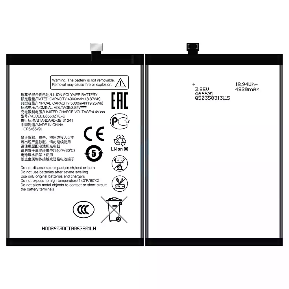 Akku E6553ZTE-B alkalmas ZTE V50