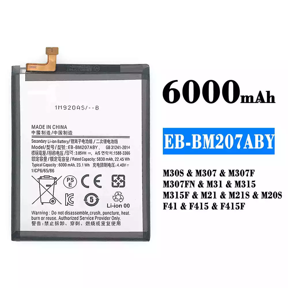 Akku EB-BM207ABY alkalmas Samsung M30S/M307/M307F/M307FN/M31/M315/M315F/M21/M21S/M20S/F41/F415/F415F