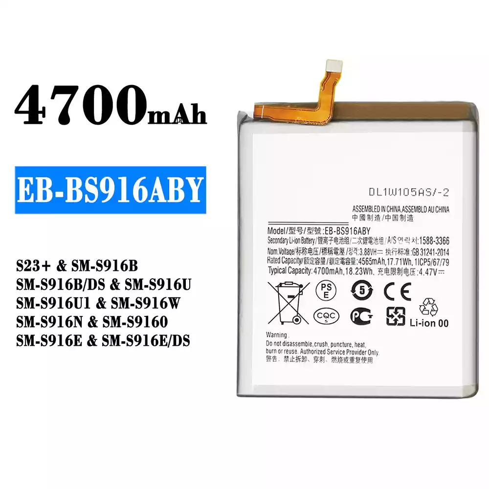 Akku EB-BS916ABY alkalmas Samsung S23+/SM-S916B/SM-S916B DS/SM-S916U/SM-S916U1/SM-S916W/SM-S916N/SM-S9160/SM-S916E/SM-S916E DS