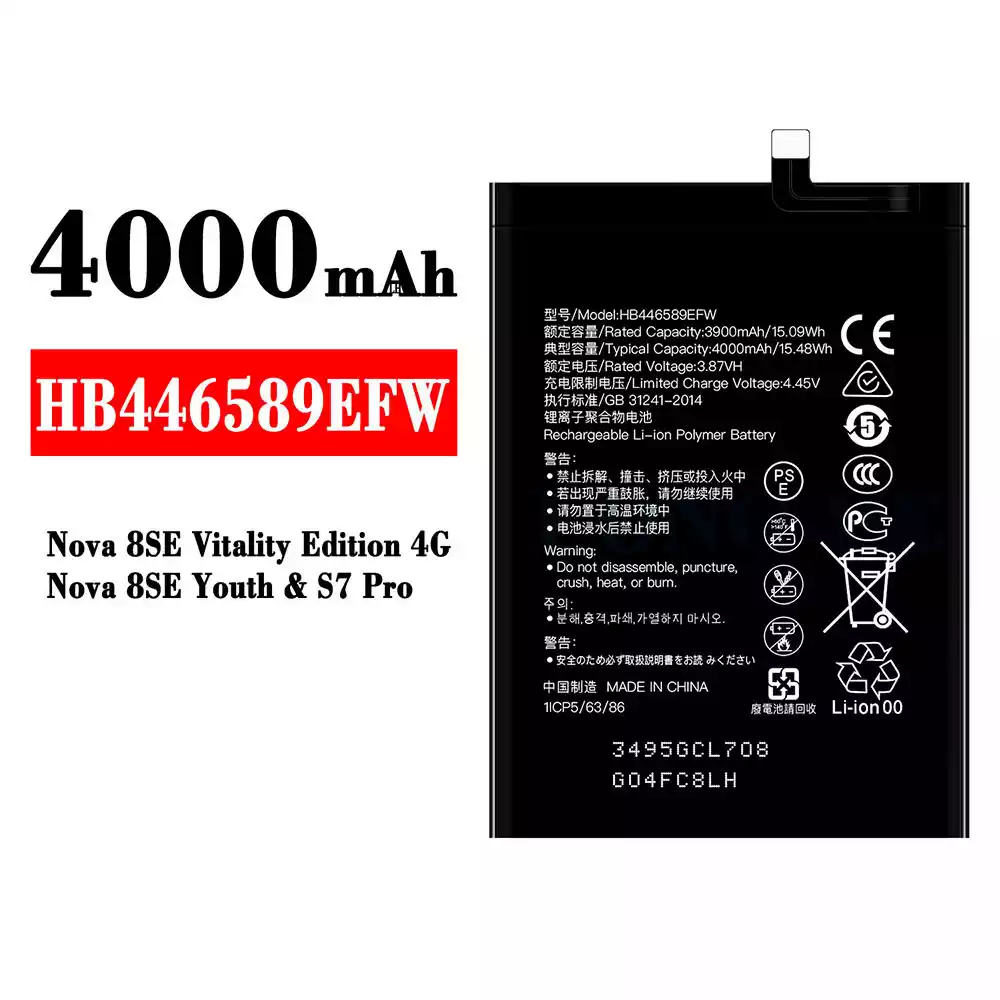Akku HB446589EFW alkalmas HUAWEI Nova 8 SE Vitality Edition 4G / Nova 8 SE Youth / S7 Pro